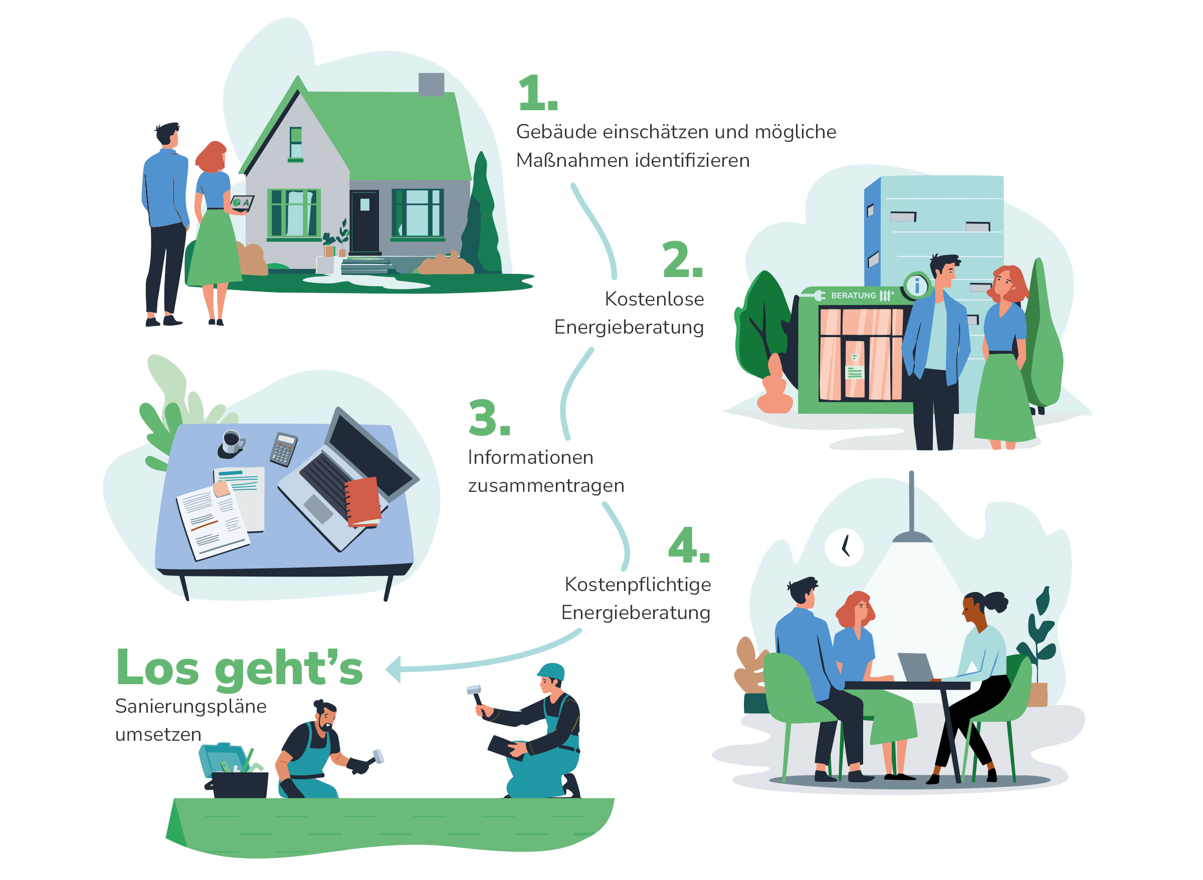 Ob Fördermittel, Heizungsumstieg oder Komplettsanierung – wir zeigen Ihnen die nächsten Schritte und bringen Sie mit den richtigen Expert:innen zusammen.